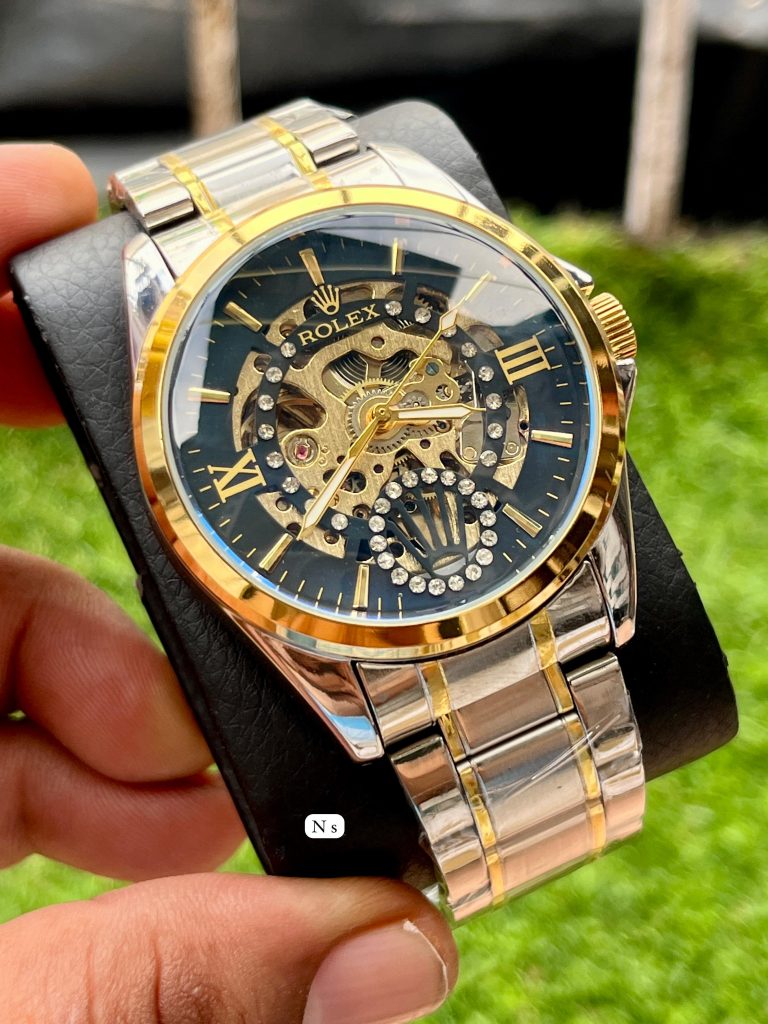 Premium Fully automatic 2 tone golden silver Black Dial Best quality Back open Good quality